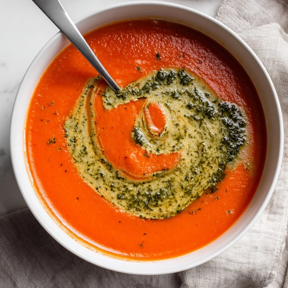 The scent of roasting tomatoes first drew me to this soup on a rainy October afternoon when nothing seemed right. I was flipping through my grandmother's handwritten recipe cards and found this gem, tucked between pages I'd overlooked for years. Something about combining the bright acidity of tomatoes with the richness of cream just clicked that day, and the pesto swirl brought it to a whole new level.