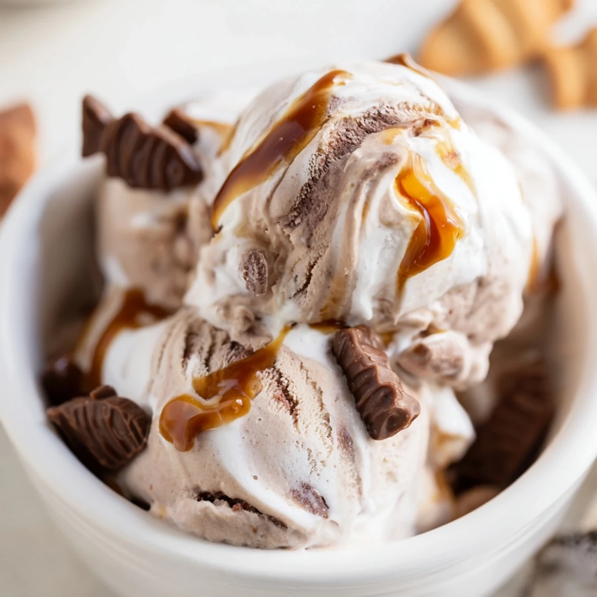 Melt 1/4 cup granulated sugar over medium heat until amber, then whisk in 2 tablespoons each of butter and heavy cream. Stir until smooth, cool completely, and it's ready to swirl into your ice cream.