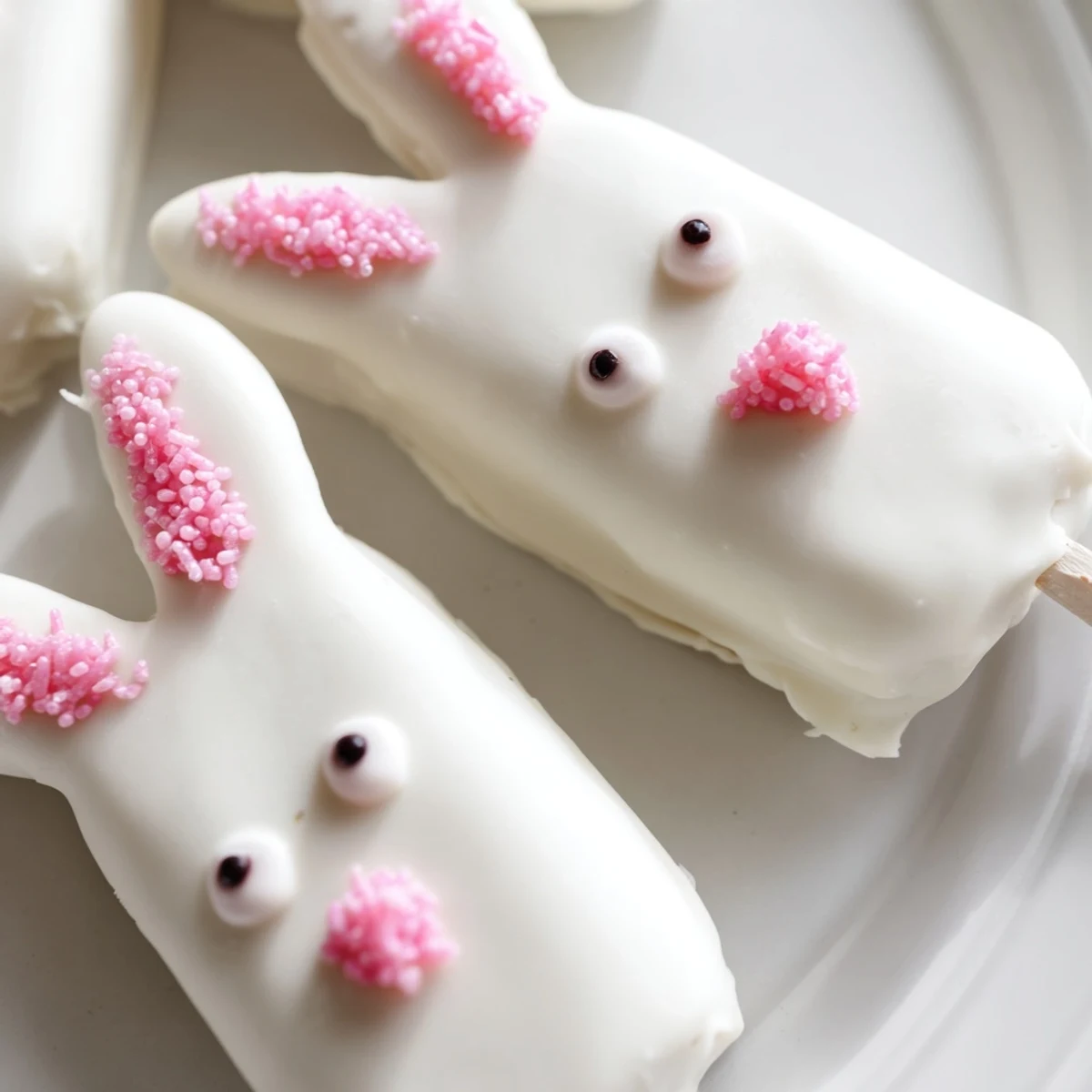 Fondant cutouts create classic perky ears, but pretzel sticks make playful crunchy alternatives. Modeling chocolate offers another pliable option that tastes delicious. For simple charm, use pink candy melts piped directly onto the white chocolate coating to suggest ears.